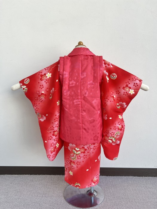 上品さのある赤の三歳の七五三衣装