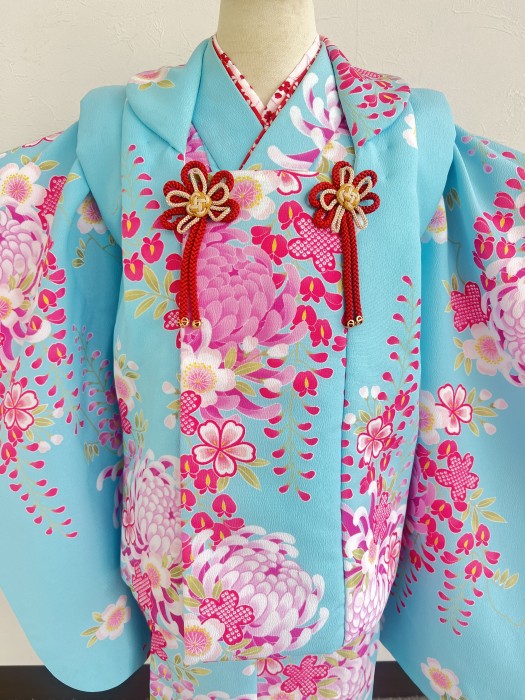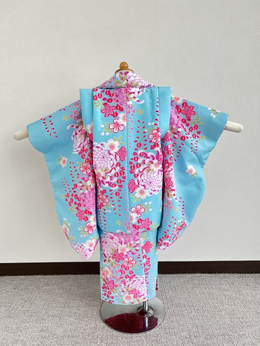 鮮やかなスカイブルーが眩しい三歳の七五三衣装