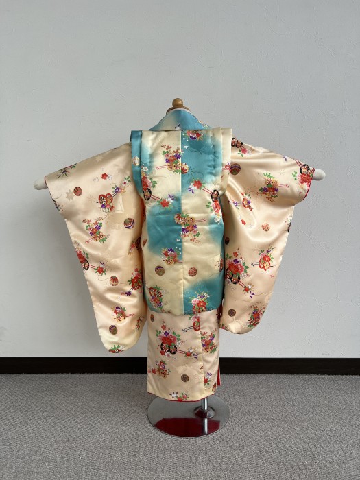 優しげなベージュに気品感じるブルーグレーが見事な一着。
