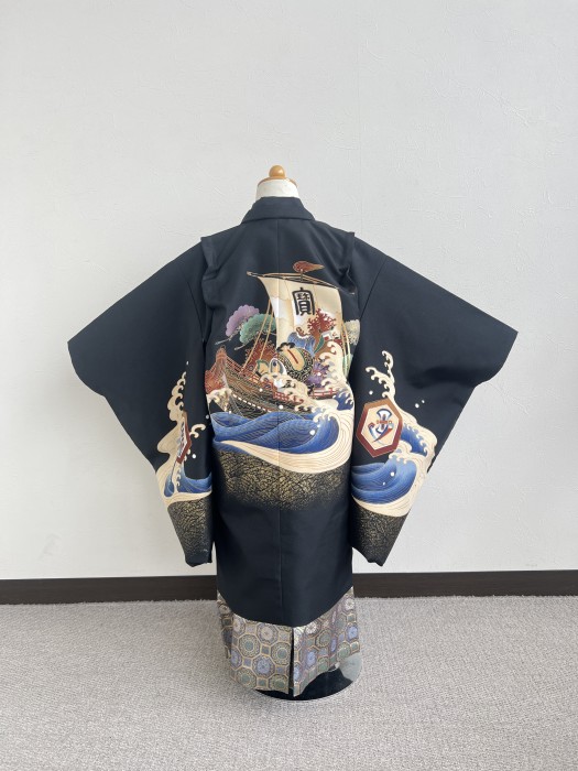ベーシックな黒の羽織袴ですが、背中には宝船が描かれている