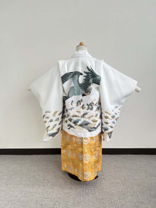 真っ白な羽織に金の袴で、とにかく派手な一着です。