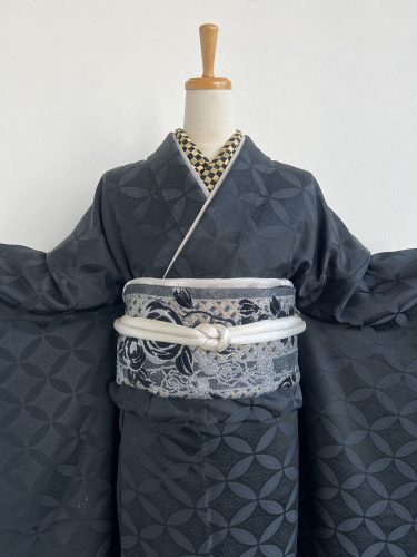 七宝柄が浮き立つ黒無地振袖