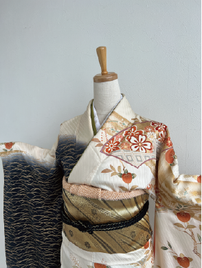 金で描かれた細やかな絵柄が格調高いアンティーク振袖