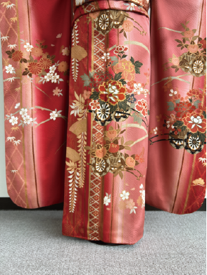 左右に広がるグラデーションと絵柄の配置が珍しいアンティーク振袖
