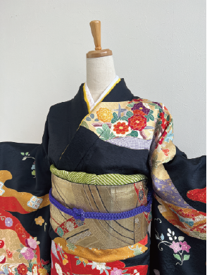 深みのある黒に赤が際立つ極上のアンティーク振袖