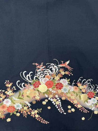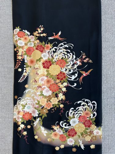 花束をイメージさせる絵柄のデザインが引き立つ黒留袖。