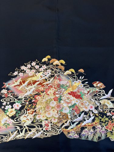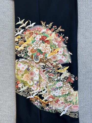 圧倒的な華やかさの中に、可憐な色合いが絶妙な黒留袖