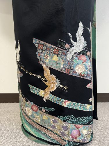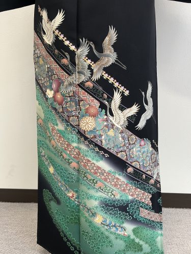 鮮やかな翡翠のような色合いが美しい黒留袖