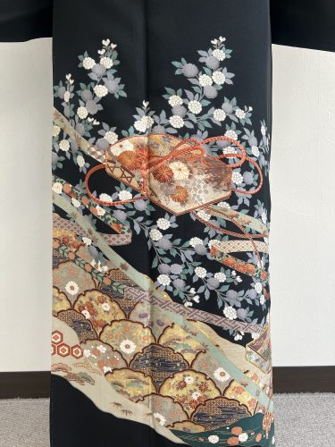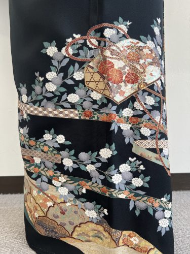 垣間見える黒の地色が白の小花を目だたせ、すっくりとした印象になっています。