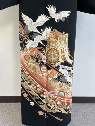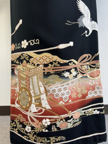 鶴と御所車が存在感を放つ黒留袖