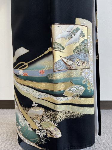 流れるような絵柄の構図とその色合いが素敵な一着。