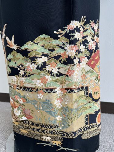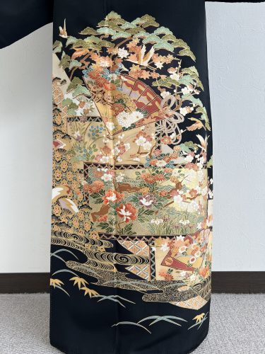 楓や梅、菊など四季折々の自然が描かれた一着。