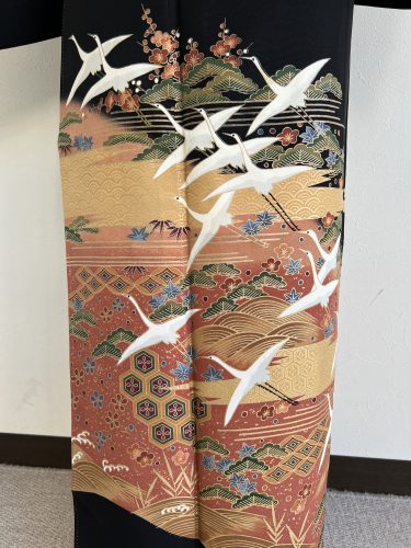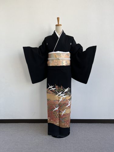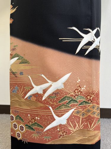 クラシカルな色合いの中に、真っ白な鶴が映えている一着。