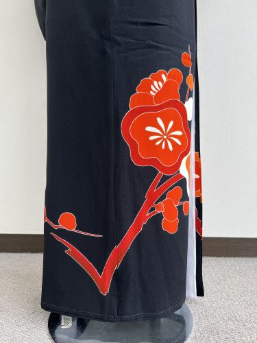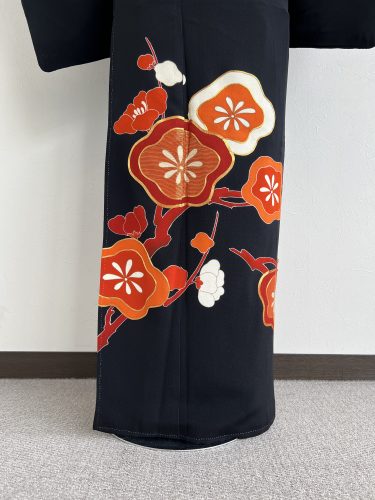 大胆に描かれた紅白の大梅が目を引く黒留袖